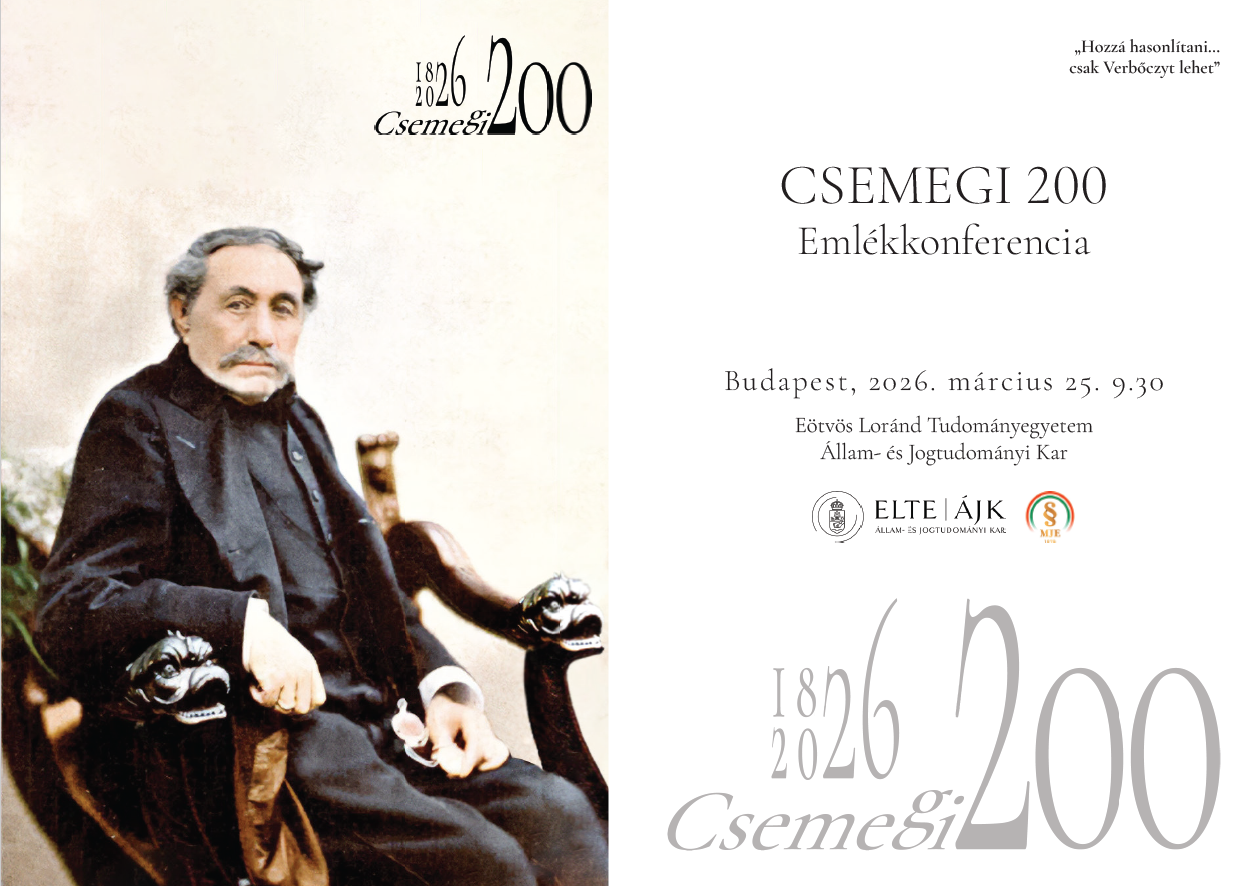 Az Eötvös Loránd Tudományegyetem Állam- és Jogtudományi Karának Magyar Állam- és Jogtörténeti Tanszéke és a Magyar Jogász Egylet 2026. március 25-én (szerdán) Csemegi Károly (1826. május 3.–1899. március 18.) születésének 200. évfordulója alkalmából „Hozzá hasonlítani… csak Verbőczyt lehet” – Csemegi 200 Emlékkonferencia címmel tudományos konferenciát szervez jogtörténészek, valamint elméleti és gyakorló jogászok, szakemberek részvételével.