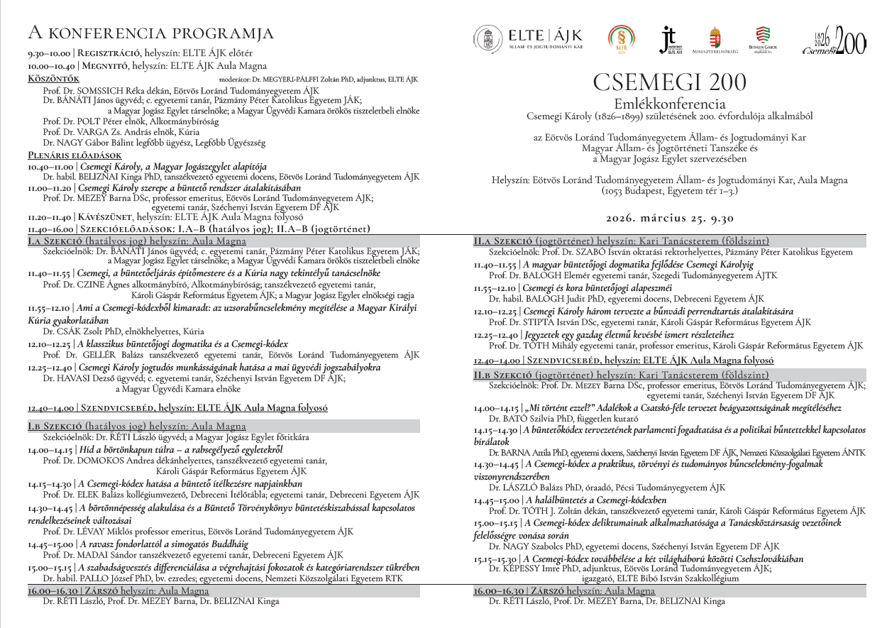 Regisztráció: 9.30–10.00, ELTE ÁJK A. épület, előcsarnok