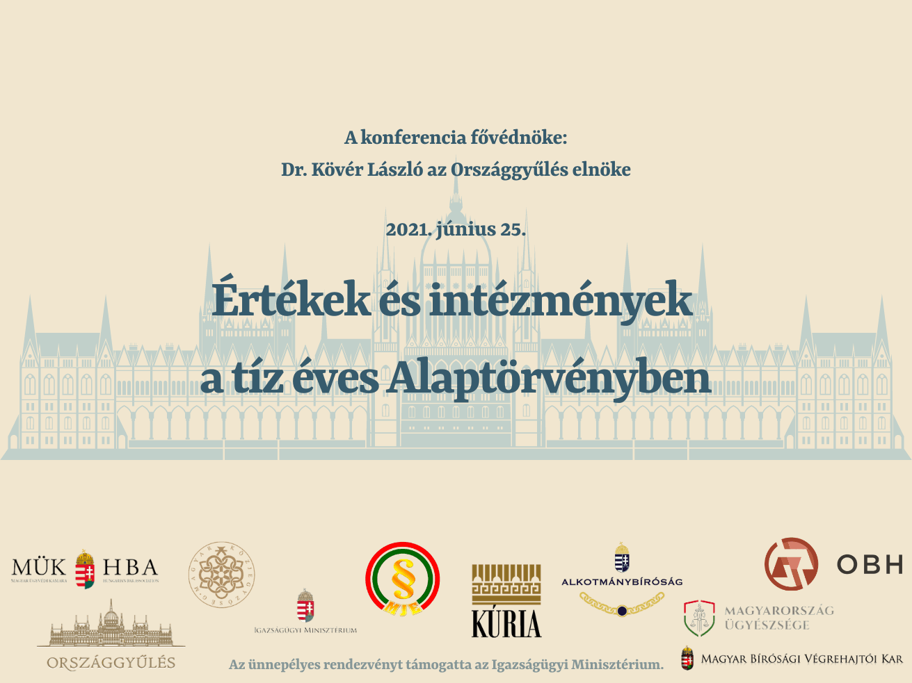A Magyar Jogász Egylet 2021. június 25-én az Alaptörvény elfogadásának 10. évfordulója alkalmából ünnepélyes rendezvényt szervez, amelyet honlapunkon élőben közvetítünk.
