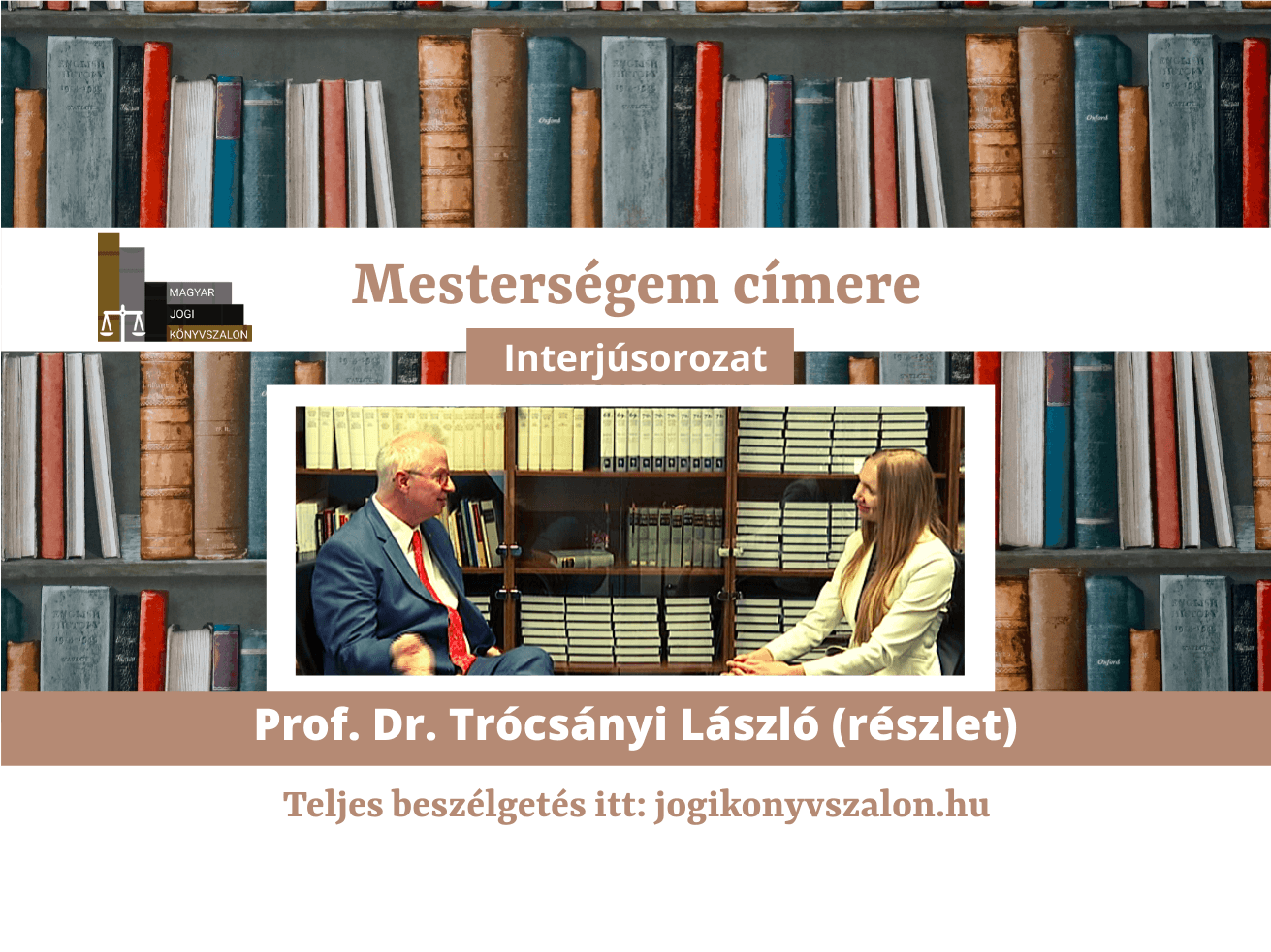 Az Első Magyar Jogi Könyvszalon alkalmából interjúsorozat indult Mesterségem címere címmel, amelynek első vendége Prof. Dr. Trócsányi László, az MJE elnöke. A beszélgetés egy részletét közzétesszük honlapunkon, a teljes beszélgetés a jogikonyvszalon.hu oldalon tekinthető meg.