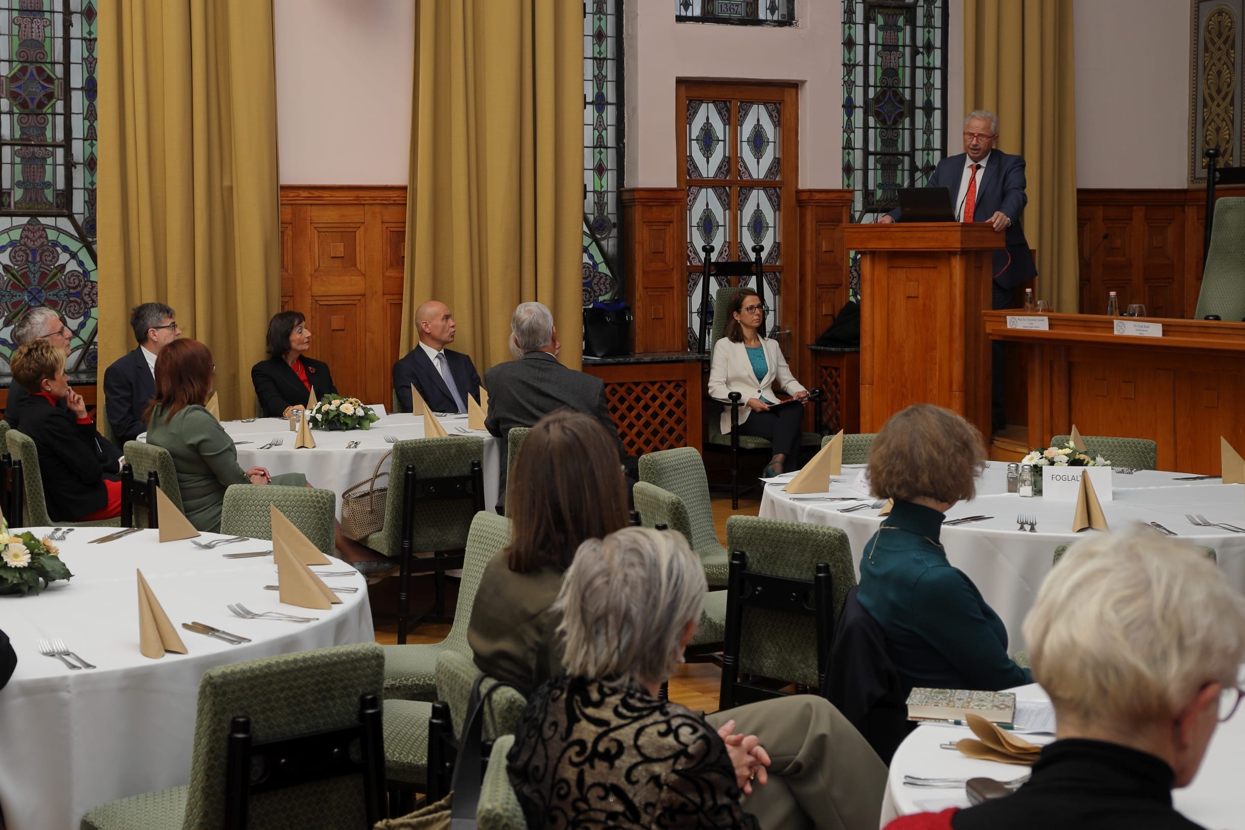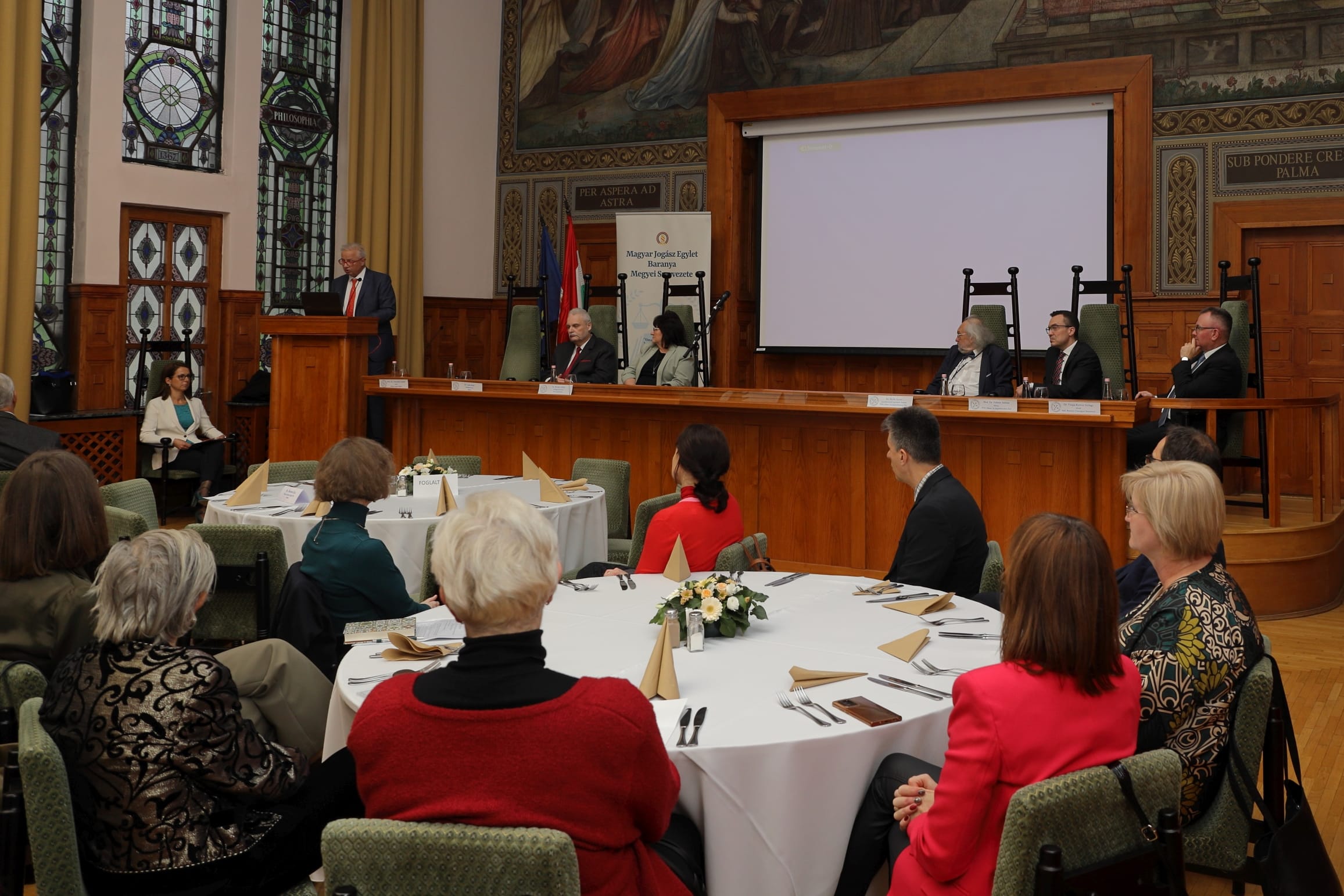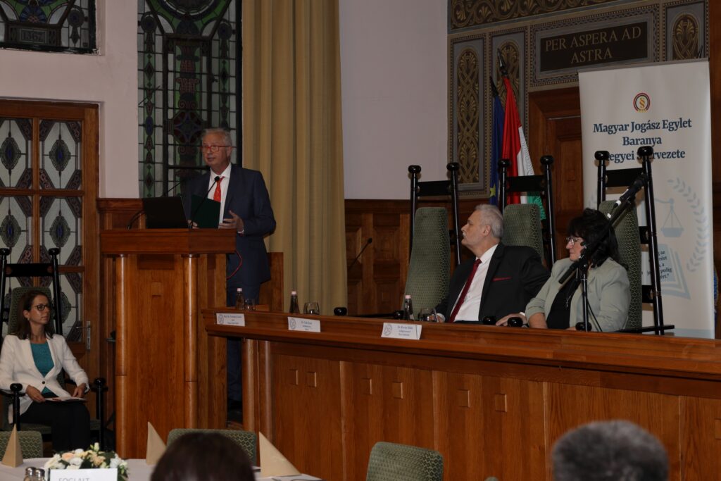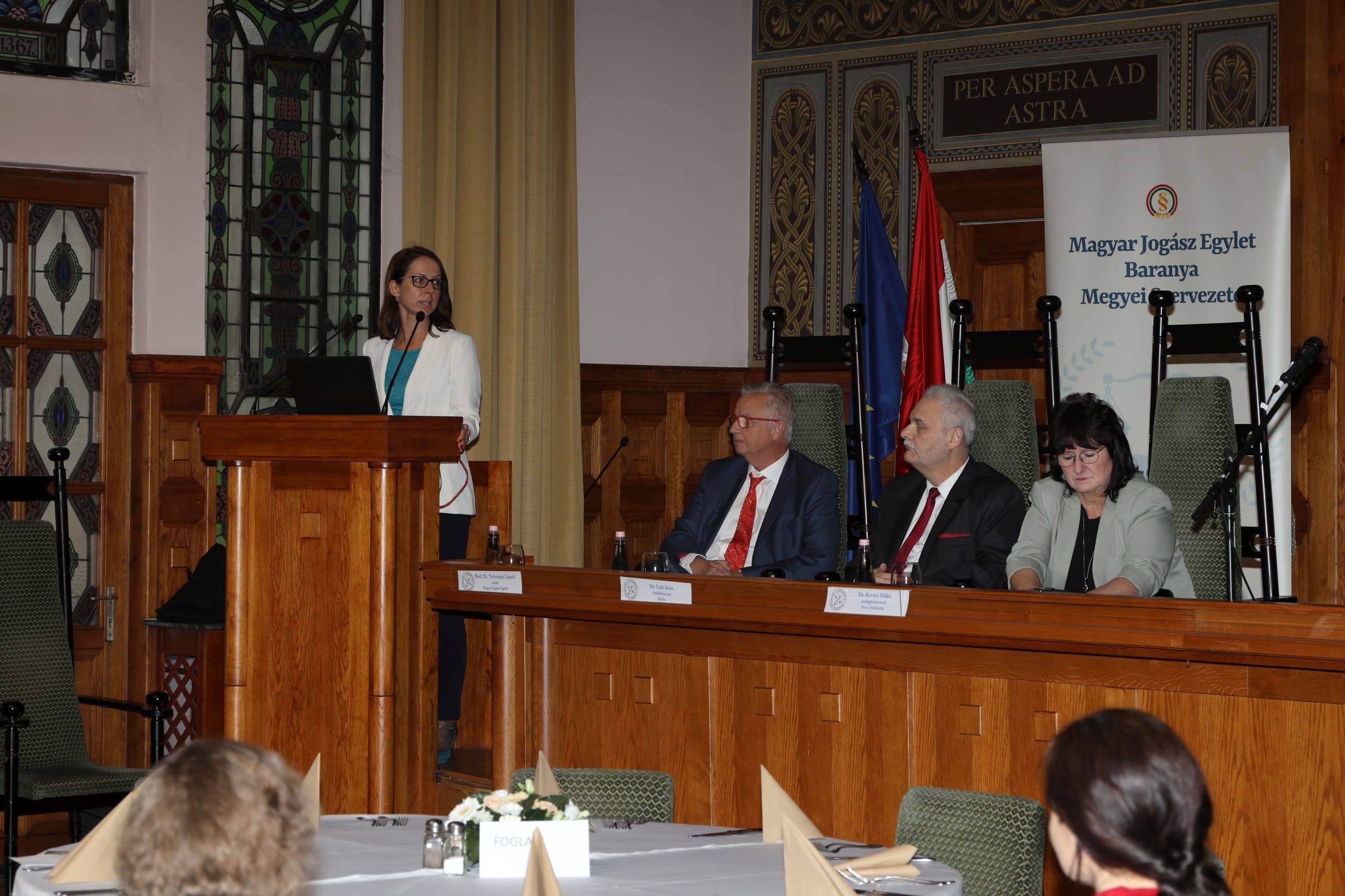 A rendezvény több, mint 100 fő résztvevőjét a MJE Baranya Vármegyei Szervezet elnöke Dr. Varga-Koritár György, valamint a Pécsi Tudományegyetem Állam- és Jogtudományi Kar dékánja Prof. Dr. Fábián Adrián köszöntötte.