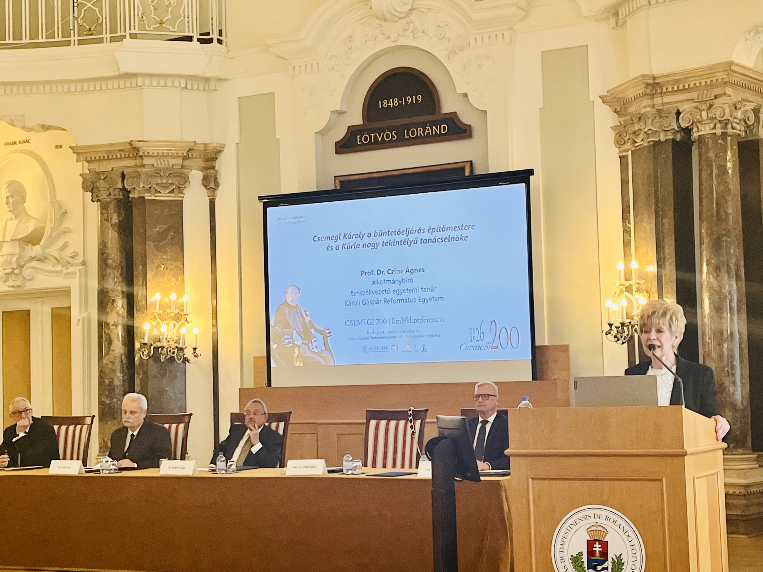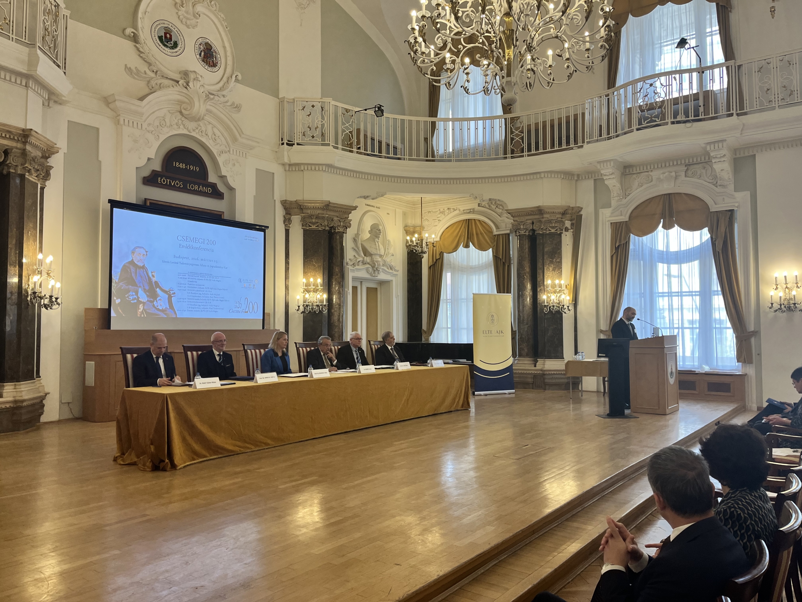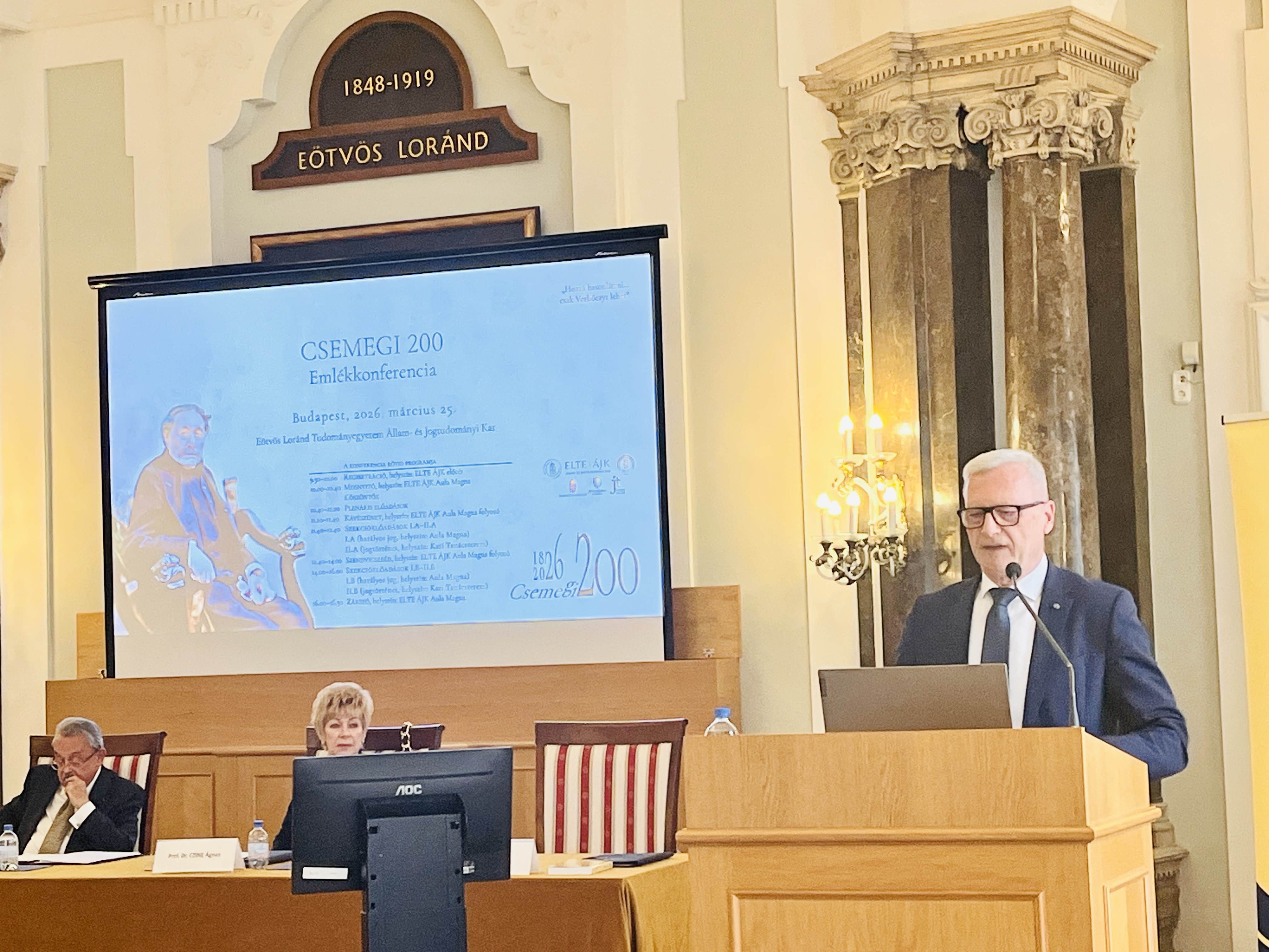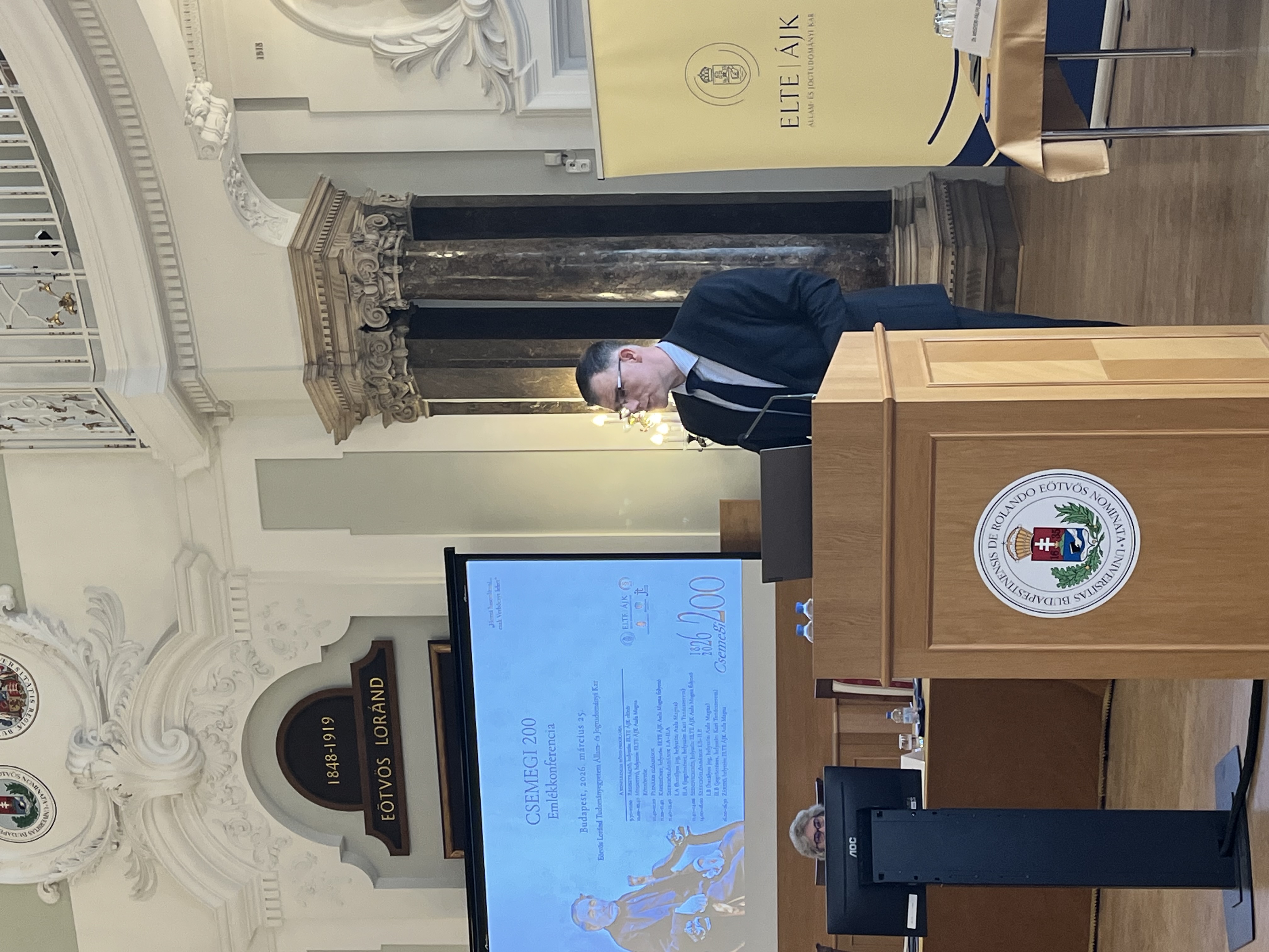 Az ELTE Állam- és Jogtudományi Kar Magyar Állam- és Jogtörténeti Tanszéke és a Magyar Jogász Egylet „Hozzá hasonlítani… csak Verbőczyt lehet” Csemegi 200 Emlékkonferencia címmel tudományos konferenciát szervezett Csemegi Károly (1826–1899) születésének 200. évfordulója alkalmából. A 2026. március 25-én, az ELTE Aula Magnájában megtartott szakmai esemény megnyitásaként a házigazda kar képviseletében prof. dr. Somssich Réka […]