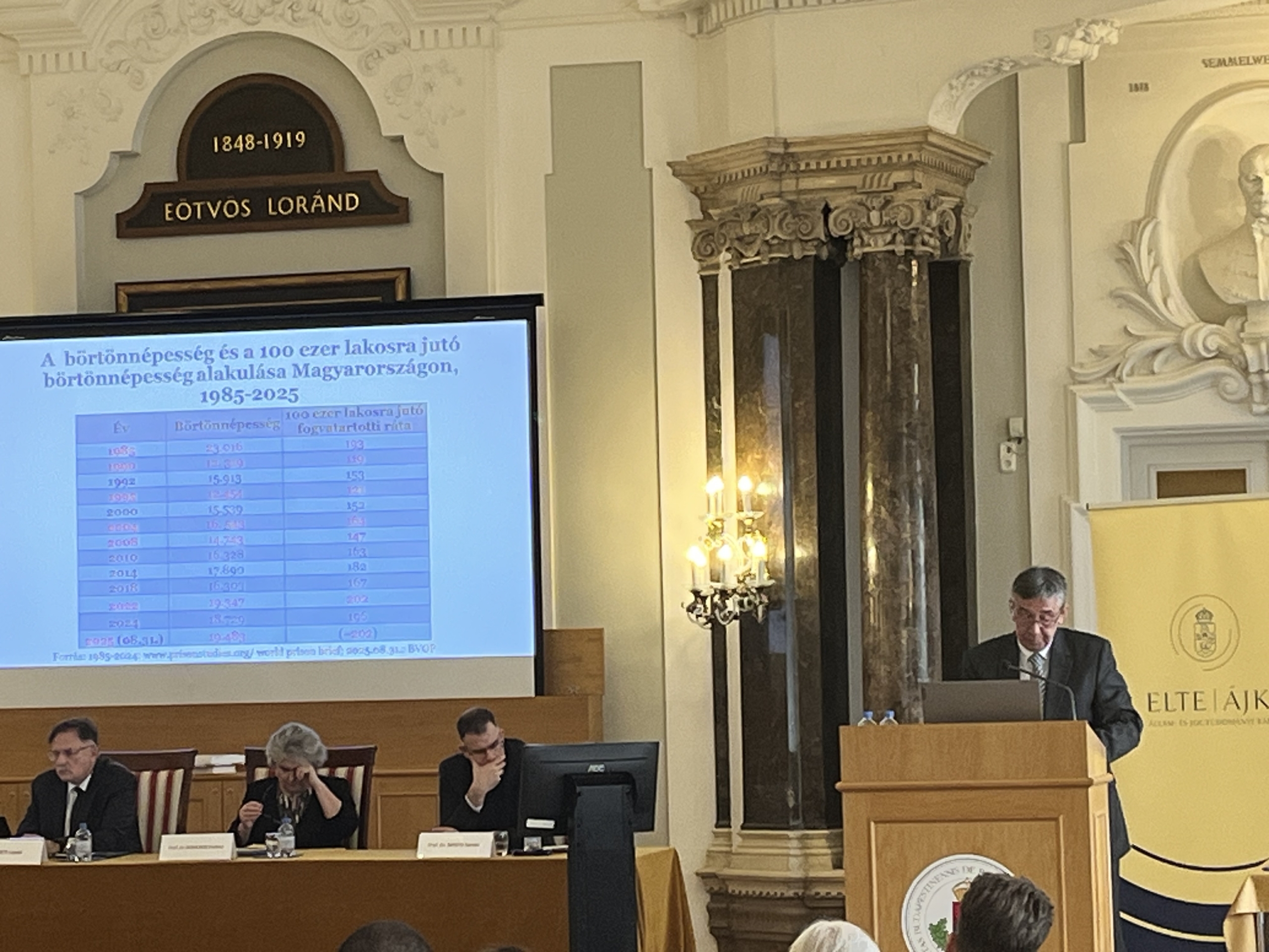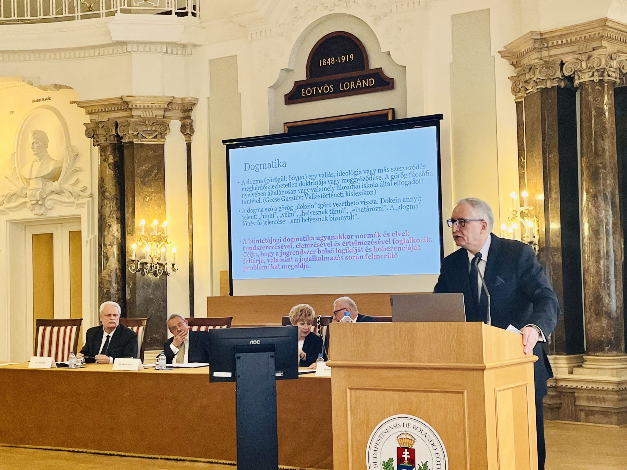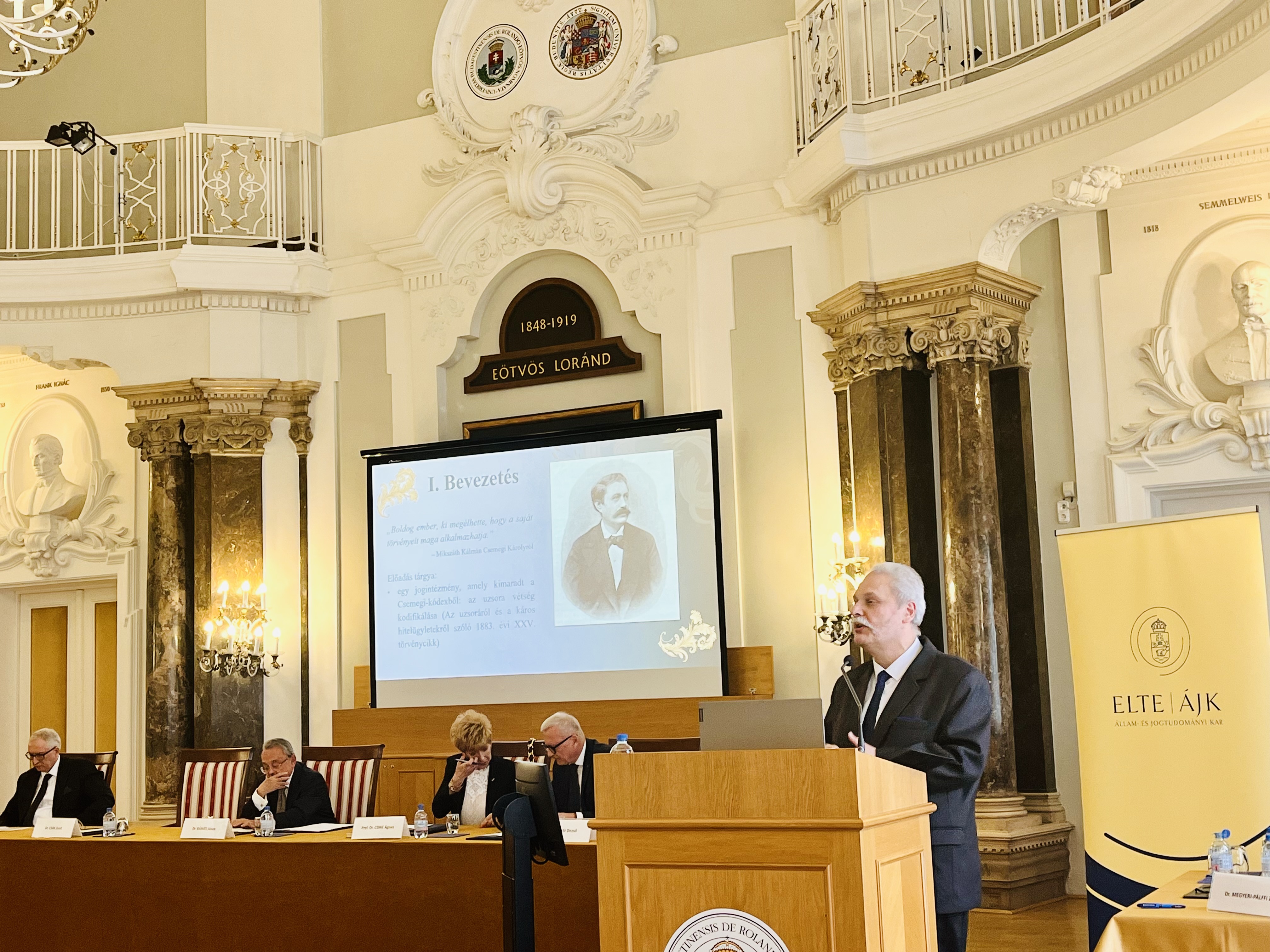 Az ünnepélyes köszöntőket követően dr. Beliznai Kinga habilitált egyetemi docens, a szervező tanszék tanszékvezetője, majd prof. dr. Mezey Barna egyetemi tanár, az ELTE ÁJK professor emeritusa tartotta meg plenáris előadását
