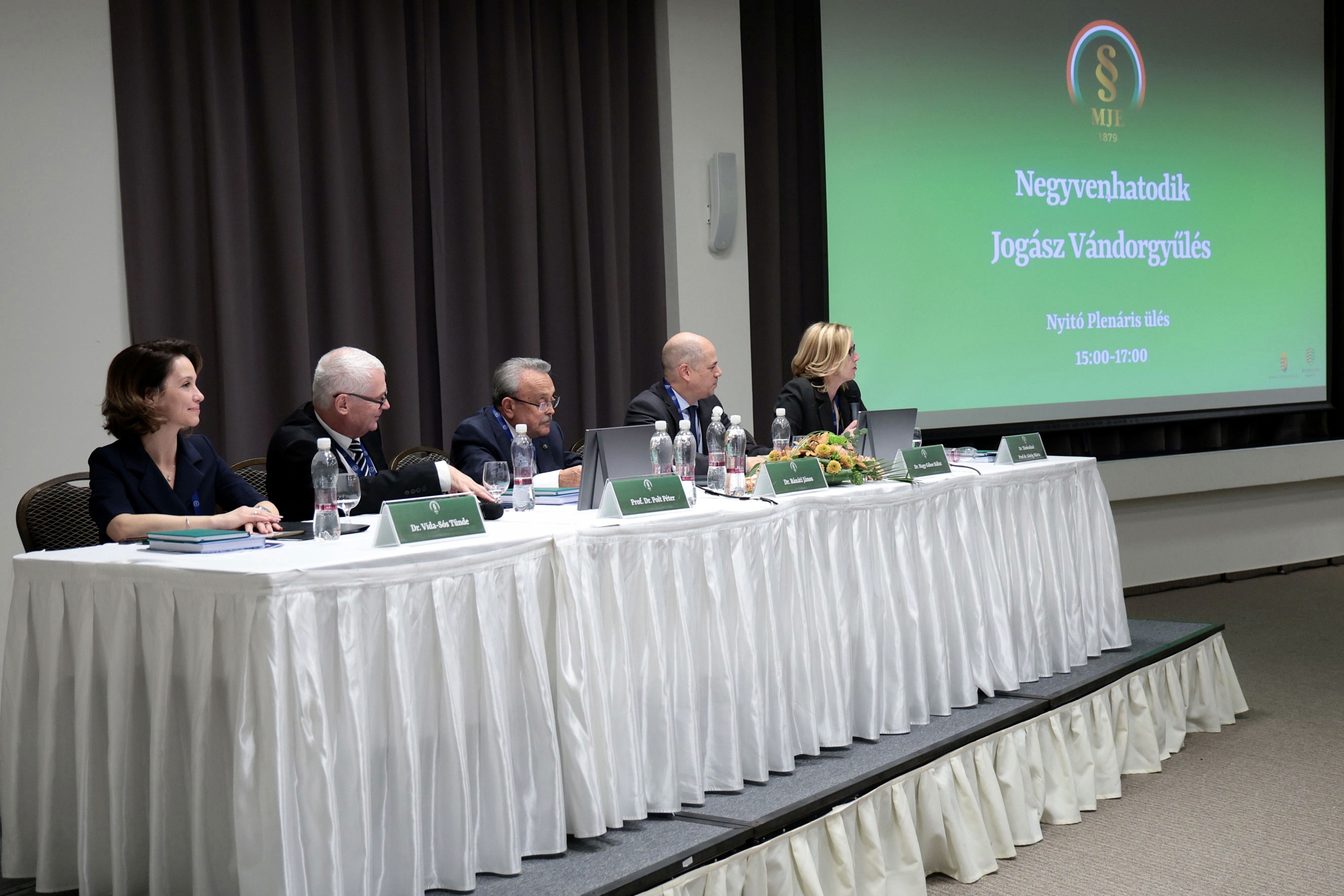 A három napos tanácskozás a nyitó plenáris üléssel kezdődött, ahol köszöntőt mondott (és moderált) Dr. Törőcsikné Prof. Dr. Görög Márta intézetvezető egyetemi tanár, dékán (SZTE-ÁJK), a Magyar Jogász Egylet Csongrád-Csanád Vármegyei Szervezetének elnöke és Dr. Vida-Sós Tünde bíró, a Szegedi Törvényszék elnöke.