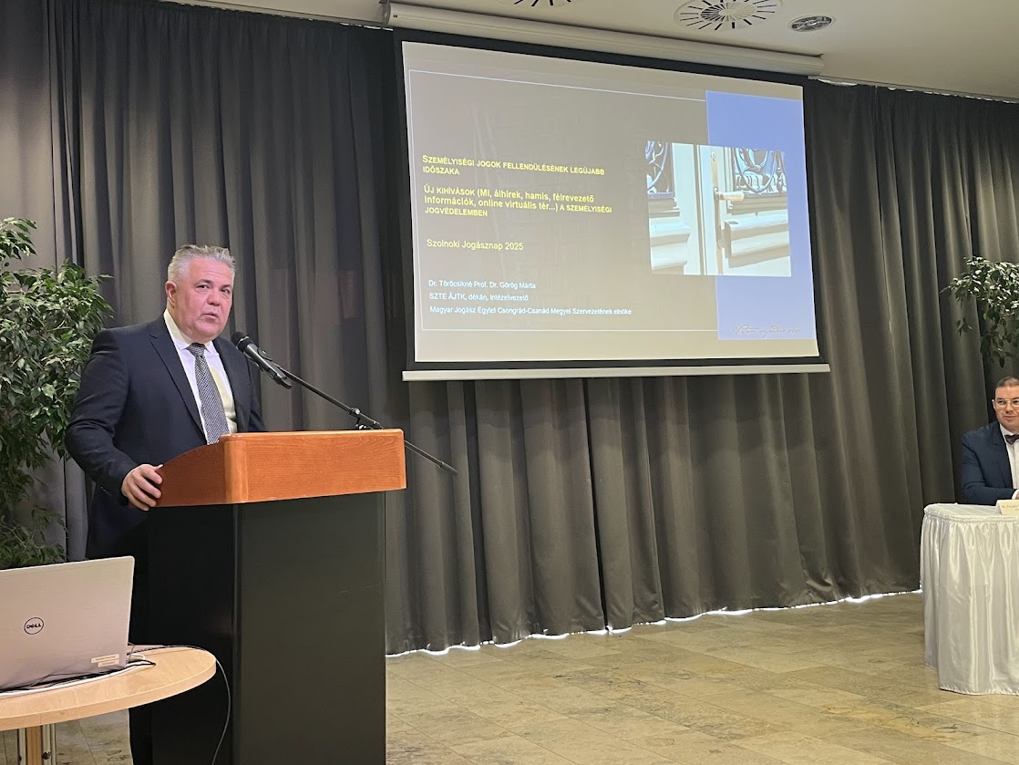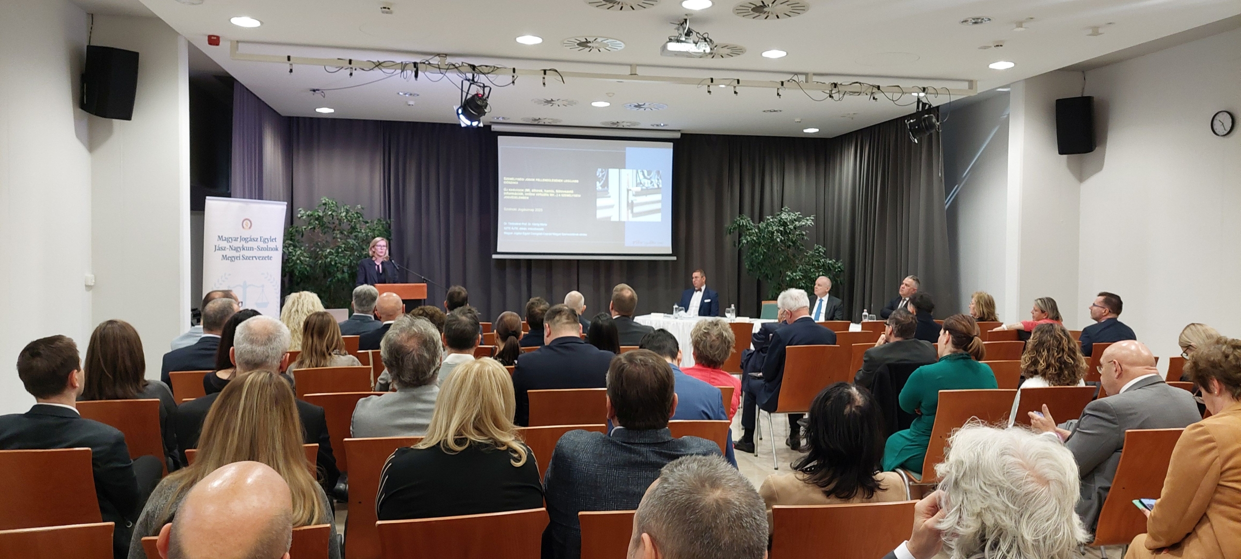 Valamennyi jogászi hivatásrend képviseltette magát az MJE JNK Szolnok Vármegyei Szervezete által 2025. 11.28. napján megrendezett Vármegyei Jogásznapon, amely képzési eseményre a szervezők a mai kor egyik legnagyobb kihívásának, a mesterséges intelligenciának a joggyakorlatra vetített hatása köré szervezett előadásokkal invitálták az érdeklődőket, akik közül az ügyvédek 3 kreditponttal is gazdagodtak.