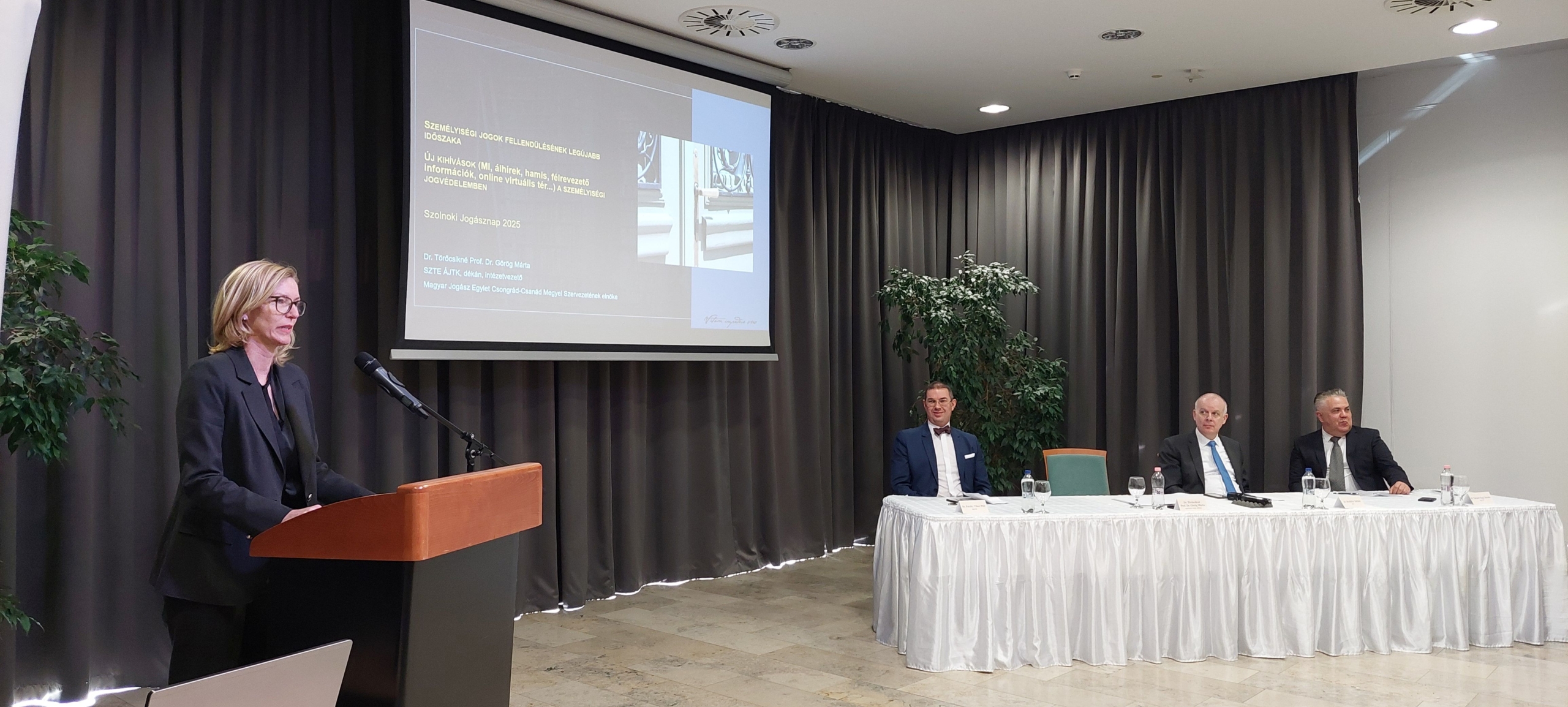 Az eseményt Dr. Szűcs László elnök nyitotta meg, hangsúlyozva a Jogászegylet kiemelt szerepét a joggyakorlat egységesítésében és az új kihívásoknak való megfelelés elősegítésében, amely szorosan kapcsolódott az előadások témájához.